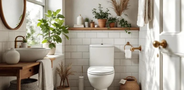 Pour ceux qui privilégient l’essentiel, le style minimaliste propose une déco wc sobre mais raffinée. La lumière naturelle, les lignes pures et l’absence de superflu dominent. Les amateurs d’espaces épurés trouvent ici une atmosphère qui rime avec sérénité et praticité au quotidien.